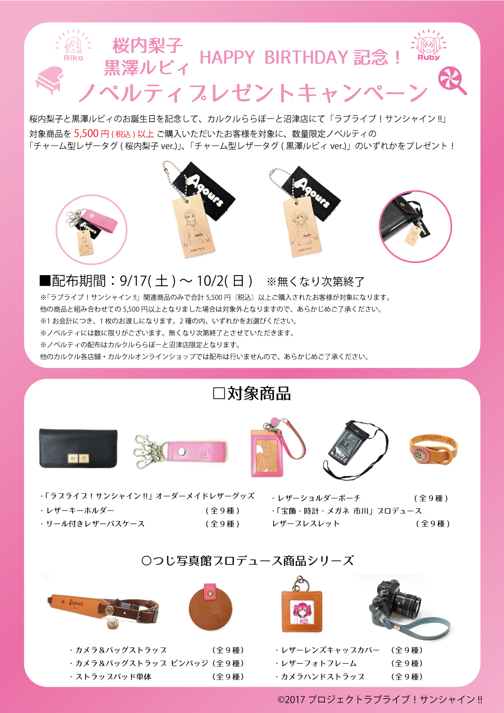 カルクルより桜内梨子・黒澤ルビィバースデー記念ノベルティ配布のお知らせ