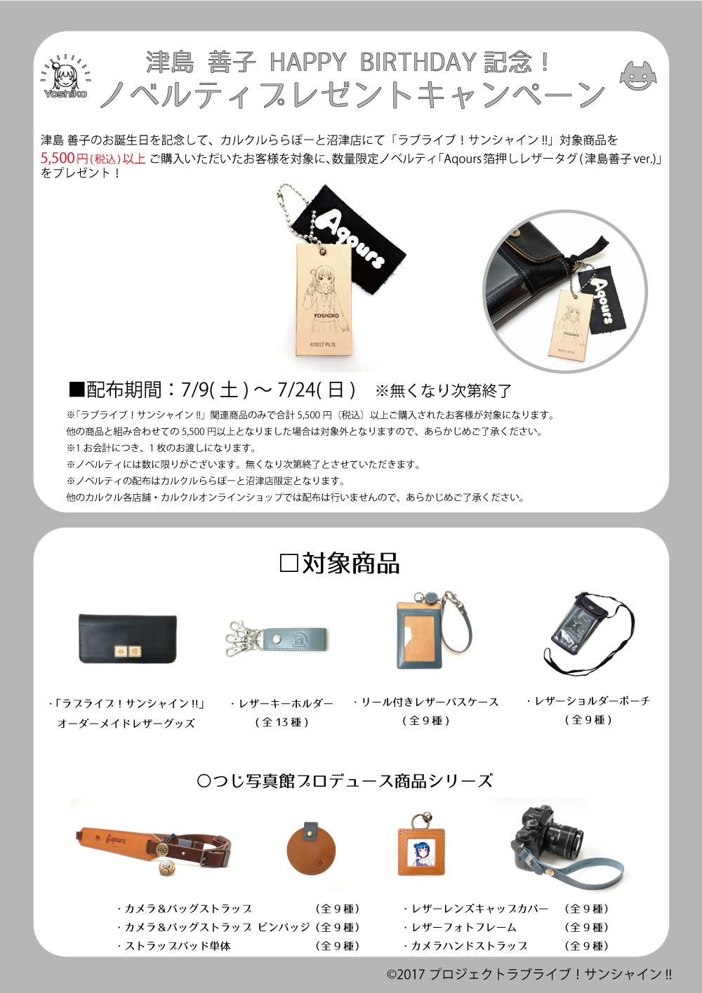 【沼津】ラブライブ!サンシャイン!!プレミアムショップより津島善子バースデー企画のお知らせ